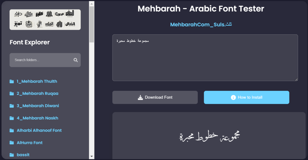 مع "محبرة"، ستحصل على أقوى مكتبة خطوط عربية + أداة ذكية لتجربتها مباشرة داخل المتصفح، بدون إنترنت وبدون تثبيت.